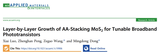 相关成果以“Layer-by-layer Growth of AA-stacking MoS2 for Tunable Broadband Phototransistors” 为题发表在著名期刊《ACS Applied Materials & Interfaces》上(中科院一区,川大B刊,影响因子9.229)。论文第一作者为太阳成集团tyc234cc2018级本科生罗夕艾,公司王泽高特聘研究员、丹麦Aarhus University董明东教授为共同通讯作者,太阳成集团tyc234cc2018级本科生彭正瀚参与了该成果。论文第一通讯单位为太阳成集团tyc234cc。