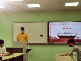 班会邀请了2021级硕士研究生欧阳志遥和王团学长进行了考研经验分享。欧阳志遥从认识论的角度,首先在宏观层面给大家分析了读研的本质,他认为:研究生阶段是一个“发现问题——认识问题——解决问题”的过程,重在训练我们的信息检索能力、寻找问题能力、找主要矛盾的能力、透过现象看本质的能力,这一长期的训练将极大地提升我们今后解决问题的能力。大家要提前确定好自己的深造路线,做好充分准备,要认识和发挥既有优势,避免走入误区。王团从方法论的角度详细给大家分享了自己在准备数学、专业课、英语和政治四个科目具体的复习方法、时间节点及相关资料的获取渠道等,并强调了坚持的重要性。随后二位学长就同学们提出的如何缓解焦虑、分解目标及资料推荐等问题进行了详细而耐心的解答,现场气氛融洽温馨。