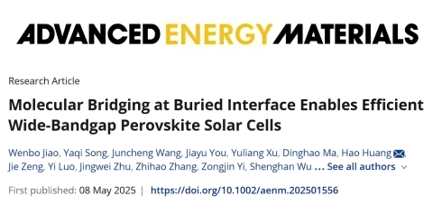 近日,太阳成集团tyc234cc赵德威教授团队报道了宽带隙单结和四端叠层钙钛矿太阳电池方面的最新研究进展,相关成果“Molecular Bridging at Buried Interface Enables Efficient Wide-Bandgap Perovskite Solar Cells”发表在Advanced Energy Materials。太阳成集团tyc234cc为本文第一通讯单位,太阳成集团tyc234cc赵德威教授、曾广根副教授、任胜强副研究员及广西大学黄浩博士为本文通讯作者,公司2022级硕士研究生焦文博及剑桥大学博士研究生宋雅琦为本文共同第一作者。