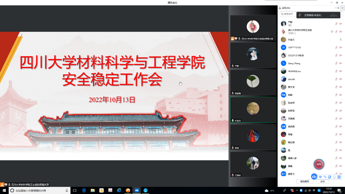 10月13日,公司召开了安全稳定工作视频会议,公司领导班子成员等全体教职工参会。会议传达了公司安全稳定工作专题会精神,副经理吴家刚强调了实验室安全重要性,对危化品存储与使用安全、废弃物处置、个人防护、常见事故应急处理等方面提出了明确要求。副经理叶金文通报了前期教学督导情况,研判了教学管理和运行过程中的风险点,强调了师德师风要求和课堂教学纪律。党委副书记张晓满就做好员工安全管理、网络安全和疫情防控工作提出了要求,通报了近期相关案例,提醒教职工要规范个人在网上的言论、合理规范使用科研经费。