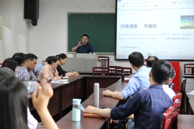 接下来,盛勇、曾广根、蒲曦鸣三位班主任分享了他们的班主任日常工作、以及与同学们交流的经验和体会。盛勇老师是2017级金材一班的班主任,他经常到新校区与同学们交流谈心,及时了解同学们学习上和生活上遇到的问题,并及时解答和解决。他班上36位同学来自不同的地方,性格特点、生活方式、学习习惯迥异,为了更全面深入的了解每一位同学,盛老师在入学之初根据教学满意度、未来规划、学习习惯、精力分配、消费观及运动频率等多方面,设计了一份由50个题目组成的调查问卷。这份问卷对熟悉员工情况,了解员工对教学和管理方面的意见和建议,并促进改进有积极的推进作用。