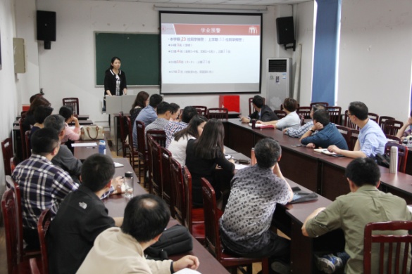 然后,她介绍和分析了本学期学业预警员工的情况并布置了本学期帮扶工作和重点帮扶对象。从本期学业预警情况来看,通过班主任、辅导员、教务老师及员工本人的努力,公司学业预警工作成效显著,上学期33位预警同学中有20位同学通过各级工作已未被预警。本学期14级学业预警人数为1人,15级学业预警人数从11人降为4人。之后,林经理就转专业、学科竞赛方面班主任工作进行了经验介绍。