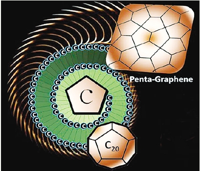 从C20到五边形石墨烯示意图