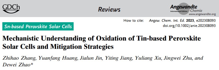 相关工作以“Mechanistic Understanding of Oxidation of Tin-based Perovskite Solar Cells and Mitigation Strategies”为题发表于国际权威期刊Angewandte Chemie。公司2021级博士研究生张志皓为论文的第一作者,公司赵德威教授为论文的通讯作者。太阳成集团tyc234cc为唯一通讯单位。