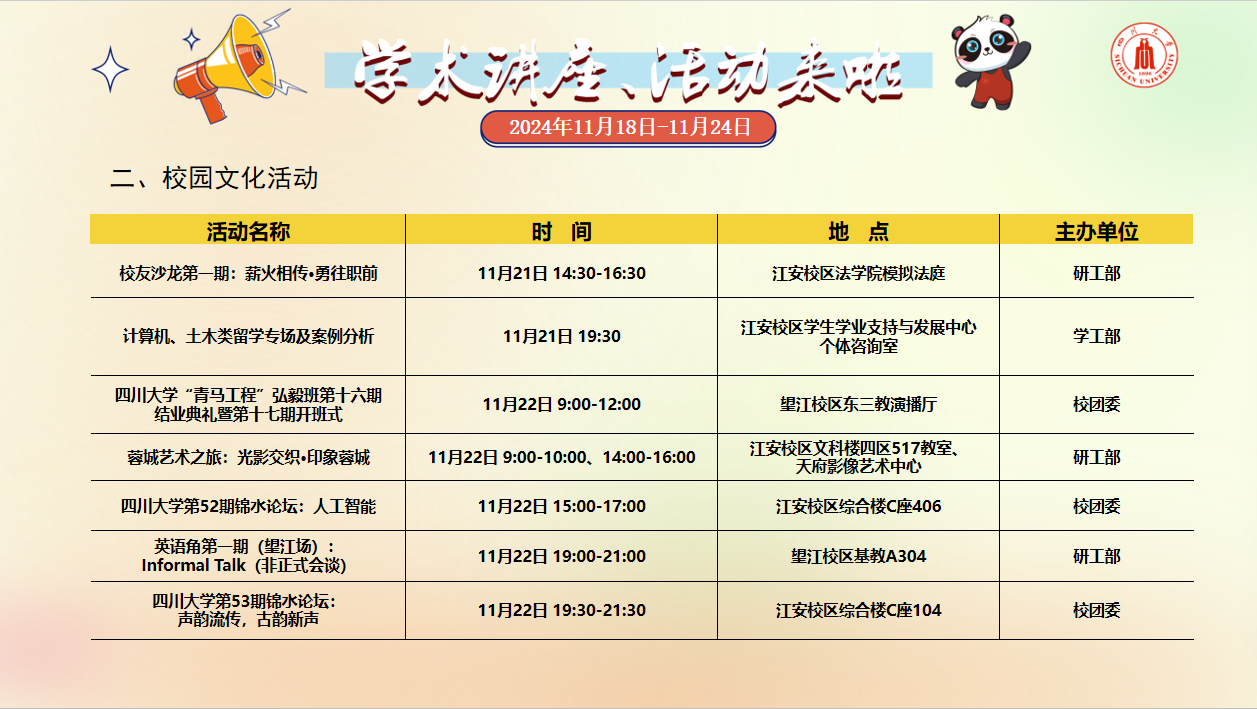 学术讲座及校园活动文化预告(11月18日-11月24日)