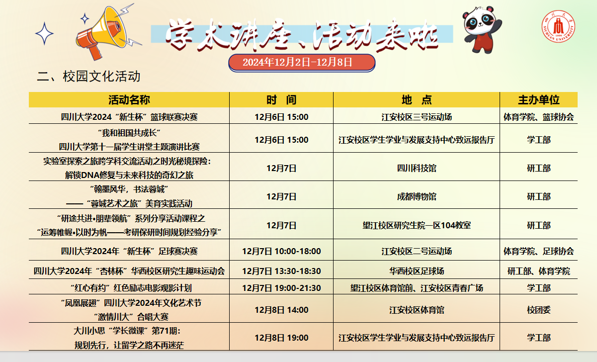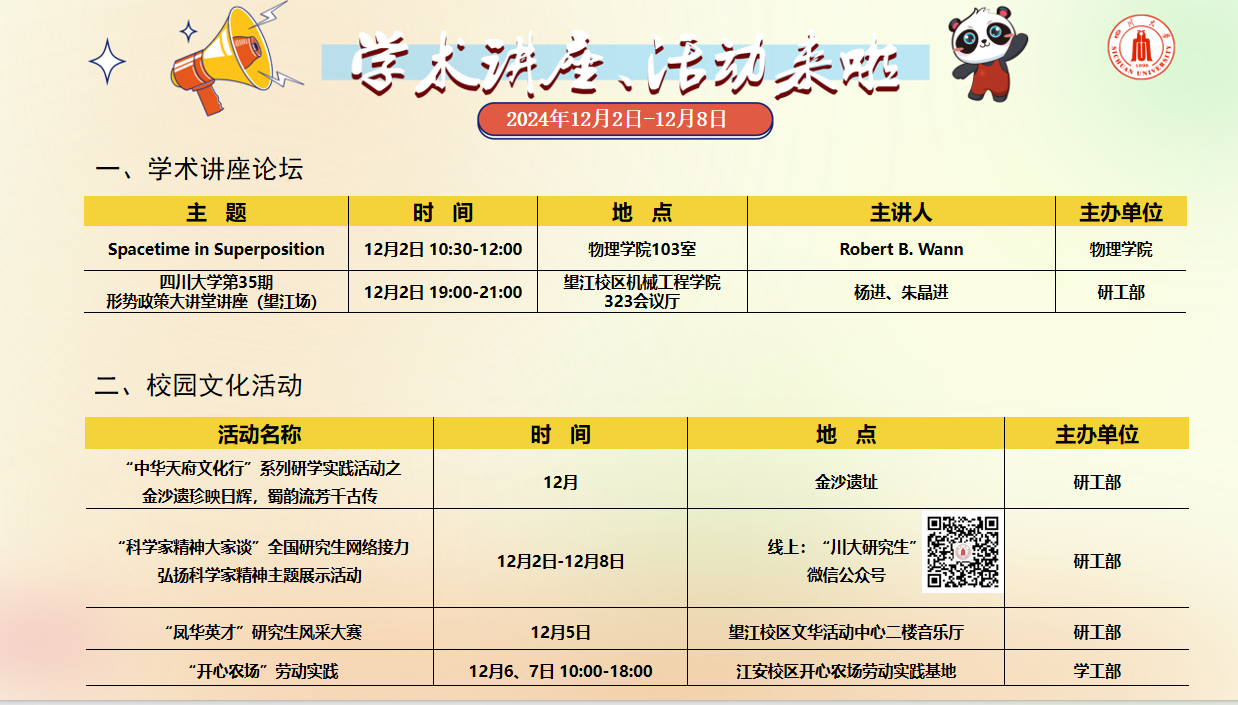 学术讲座及校园活动文化预告(12月2日-12月8日)