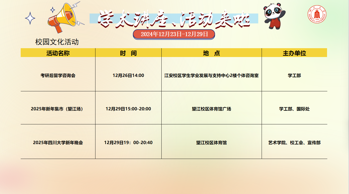学术讲座及校园活动文化预告(12月23日-12月29日)
