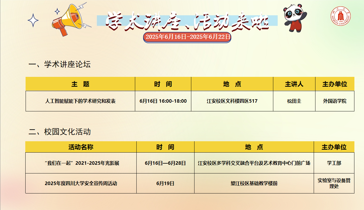校园文化活动预告(2025年6月16日-2025年6月22日)