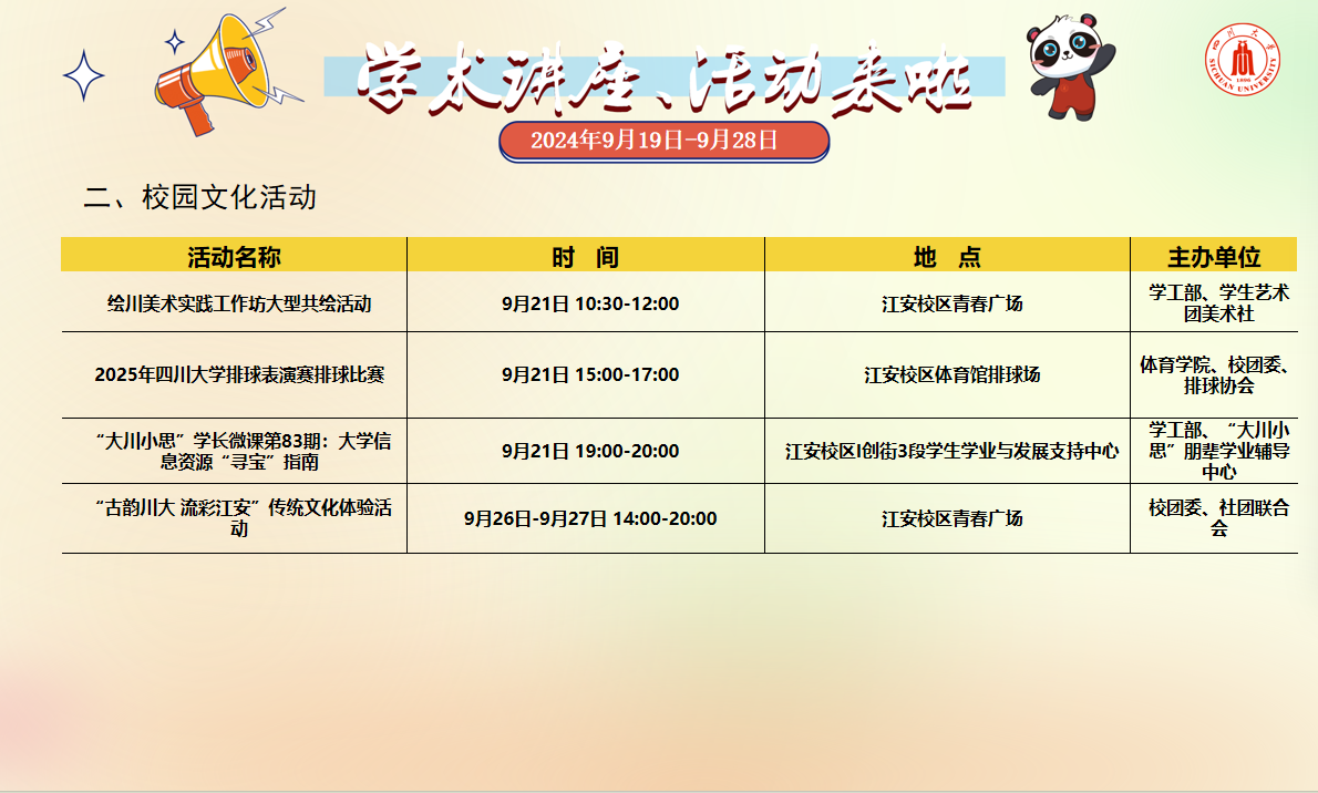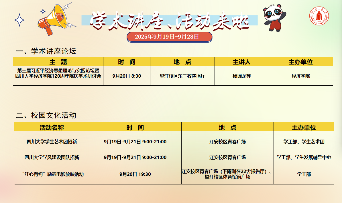 学术讲座及校园活动文化预告(9月19日-9月28日)