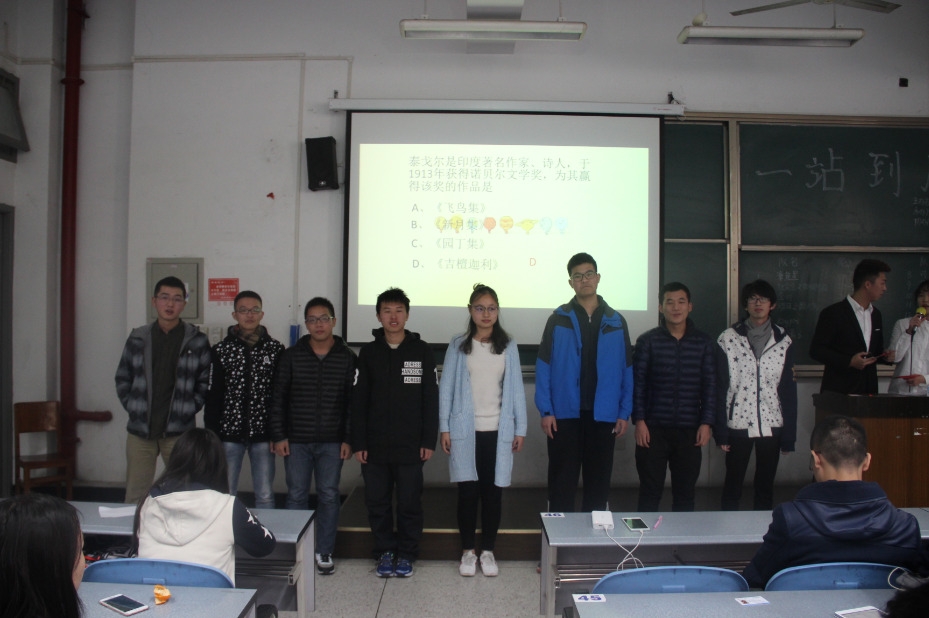 2016年11月27日下午两点三十分,由太阳成集团tyc234cc团委员工会主办的“一站到底”知识竞答比赛在综合楼C座303教室准时开始。
