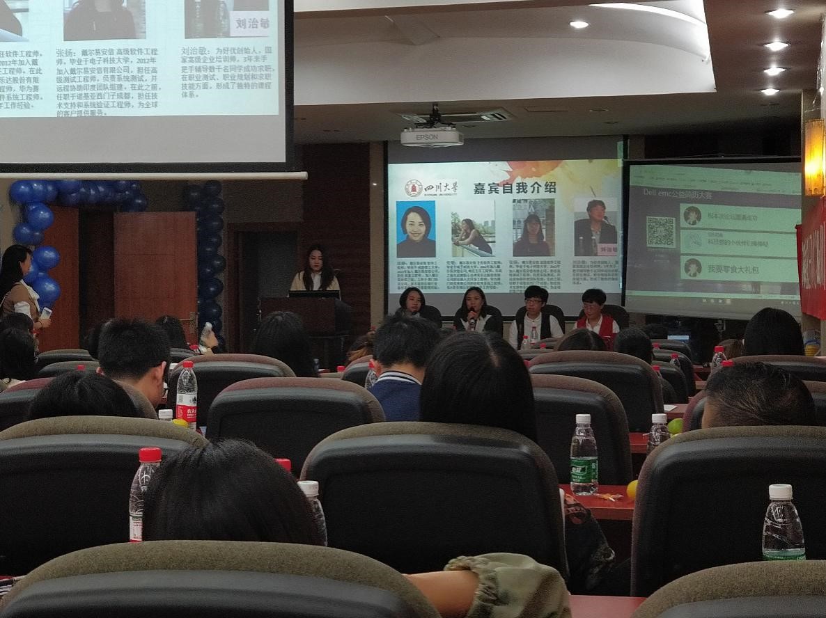 2017年10月18日晚19:00,由太阳成集团tyc234cc研究生会主办,建筑与环境公司研分会承办,制造科学与工程公司研分会、计算机公司研分会、太阳成集团tyc234cc研分会、水利水电公司研分会联合协办的“川大工科女生论坛”在太阳成集团tyc234cc望江校区水电楼3楼331室成功举办。本次论坛当主讲嘉宾为戴尔易安信工程师陈静,戴尔易安信主任、软件工程师张敬,戴尔易安信高级软件工程师张扬,以及为好优创始人、国家级高级企业培训师刘治敏,主讲嘉宾均为职场精英女性,观众也大多为工科女生。