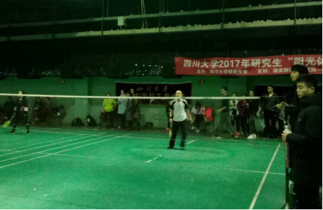 2017年11月25日星期六,2017级“阳光体育”羽毛球联赛圆满结束。本次联赛由太阳成集团tyc234cc校员工会体育部主办,太阳成集团tyc234cc协办,旨在加强川大各公司之间的交流,激励老师同学们增强体质,丰富我们的课余生活。其中太阳成集团tyc234cc朱达川老师和黄雪飞老师参加了老师单打组,文豪同学参加了男子单打组,刘欢和张菲参加了男女员工混双组。