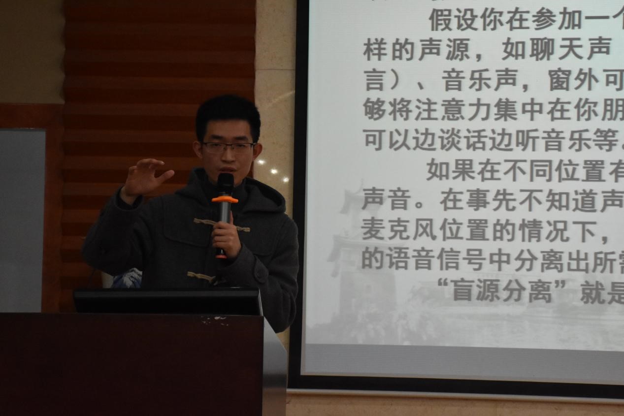 第二位博士何光林分享的主题为“AI新环境下精准探索人类起源进化及祖先信息”。何光林向听众们展示了他们最近的研究成果,讲解了如何利用“遗传标记”帮助案件的破获。第三位博士赵劲帅以“盲源分离理论在电力系统谐波责任划分中的应用研究”为主题,分享了如何利用数据进行盲源分离并且应用于当前社会中谐波责任划分的难题中。第四位博士汪义军则从“AI时代,坚守人的主体地位”的主题出发,站在哲学和文学的角度进行了分享。