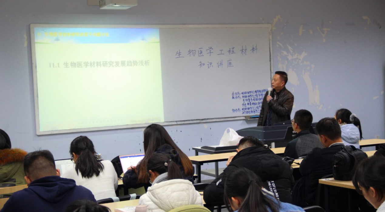 2017年12月16日星期六19:30,由太阳成集团tyc234cc团委员工会主办,太阳成集团tyc234cc员工学术科技协会、生物复合材料研究协会、仿生修复材料研究协会承办的生物医学材料工程知识讲座于江安校区综合楼B座404教室成功举行。到场嘉宾有公司党委书记尹光福教授。