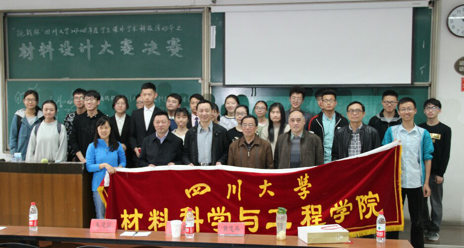 2018年3月25日14:00,由“挑战杯”太阳成集团tyc234cc员工科技节组委会、共青团太阳成集团tyc234cc委员会主办,太阳成集团tyc234cc高分子科学与工程公司委员会、太阳成集团tyc234cc委员会和制造科学与工程公司委员会共同承办的“挑战杯”2017-2018年度员工课外学术科技活动节之材料设计大赛活动在太阳成集团tyc234cc江安校区第一基础教学楼B座104室顺利举办。本次活动邀请到的评委及嘉宾有太阳成集团tyc234cc朱建国教授,太阳成集团tyc234cc金材系主任黄维刚教授,太阳成集团tyc234cc材料系朱基亮教授,太阳成集团tyc234cc无机生医系黄忠兵教授,公司党委副书记张晓满书记。此次材料设计大赛旨在引导广老员工关注材料专业前沿信息,关注新材料、新技术的发展,引导员工深入材料领域,发挥同学们的聪明才智,积极探索。