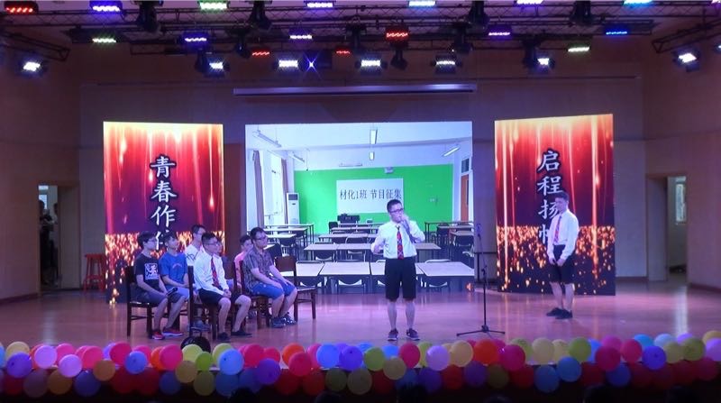 尹书记致辞结束,文艺节目开始登场,严肃的会场气氛瞬间轻松活泼起来。15级博士学姐学长深情演奏《我真的受伤了》,牵动多少少男少女的心,勾起了多少悲喜回忆。14级材料化学班同学们的话剧《请开始你的表演》带我们重温四年大学时光,上课点名的一幕幕仍在我们心里。旭&航组合指弹一首《风向仪》,平静了我们的内心,引导我们走向记忆深处,曾经我们嬉闹的情景恍然再现,相识相交勿相忘。14级金属材料班同学们的《扇子舞》和15级硕士张博雅同学的独舞《采薇》则呈现了古典舞蹈之美,优雅曲调、柔美舞姿,应了那句此景只应天上有,人间能得几回观。