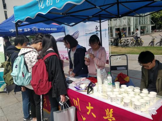 本次活动进行时还有一队藏族同胞前来捧场,他们来到摊位上了解了活动用意,对我们提出了赞扬,并且欣然接受了在场同学的请求,用藏语写下了“志愿者”三个字,为本次活动增添了光彩。