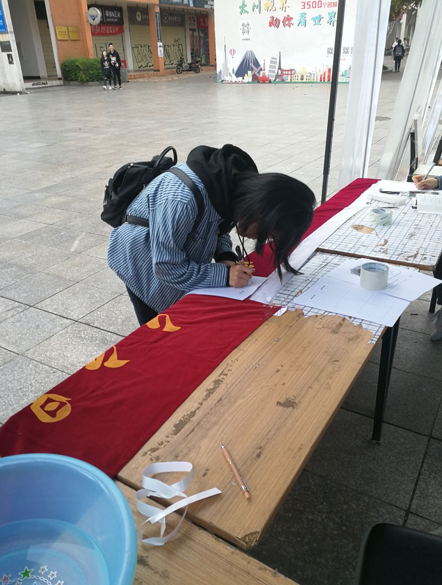 下午1点20分,志愿者们准时到达青春广场,志愿活动在一点半开始。志愿者们在青春广场邀请过路的同学来到摊位,向他们介绍活动,请他们为盲人朋友推荐喜欢的书目,并写下推荐理由。摊位旁边还设置了“盲人走路”的游戏,使同学们蒙上眼罩,在另一名同学的指挥下走过轨道,体验盲人朋友生活的不易。在游戏和小礼品的促进作用下,同学们荐书的热情高涨。同时,我们在图书馆门口安排了志愿者,邀请在这座知识宝库来来往往的同学参与我们的活动。一天下来,收获颇丰。