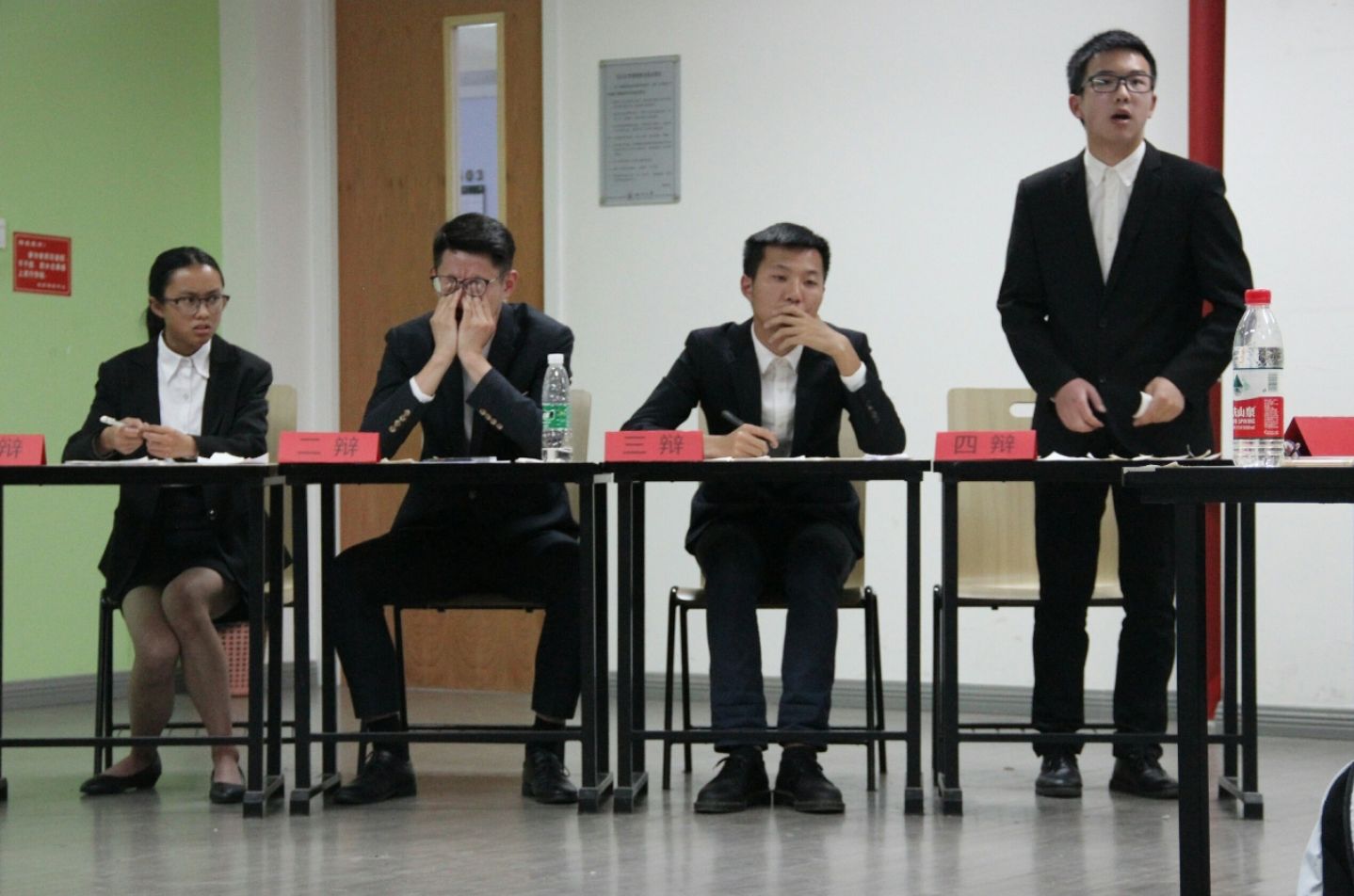 辩论赛开始之初,由正方一辩陈述论点,反方四辩对正方论点进行提问,再换反方一辩提出论点,正方四辩提问,后由正反方二辩进行申论,对方三辩进行提问。完成了两轮的提问与回答之后,由正反方三辩进行总结。之后就进入了最为激烈的自由辩,双方辩手不断的起身、坐下、问问题、回答问题,把整场比赛推向最激动人心的时刻。自由辩结束之后,再由反方四辩与正方四辩进行最后的总结。然后由评委进行投票与点评,公布比赛结果。