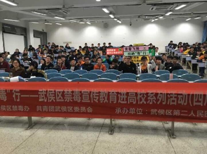首先由武侯区禁毒工作委员会的警官为我们讲解毒品的分类以及吸食毒品后的表现与危害。随后成都市武侯区第二人民医院宋芬医生用通俗易懂的语言揭示了毒品的性质、种类、特征等知识。同时结合收集到的吸毒案例,深入浅出地给员工论述和分析了毒品的危害。以血的教训、铁的事实告诫同学们认清危害,树立自我保护意识、谨慎与他人交友。并语重心长的告诫同学在日常生活中一定要自觉抵制毒品、远离毒品。