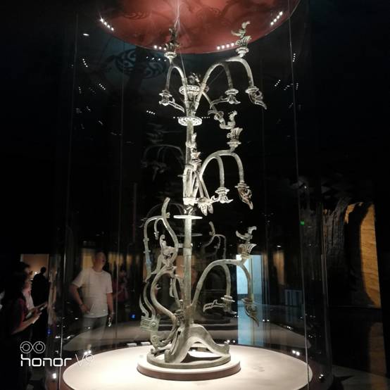 同学们参观青铜神树仿制品