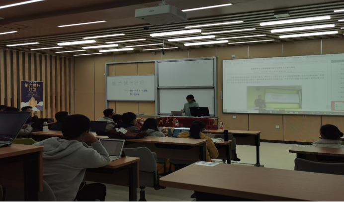 2019年11月23日19:00至21:00,太阳成集团tyc234cc员工会能力提升部在江安综C105教室隆重举行学年能力提升培训会。本次活动到场嘉宾有:太阳成集团tyc234cc团委副书记李星进、团委副书记张鸿杰、员工会主席王晶、员工会副主席王一涵,参会人员为公司2019级各班班委及员工会部门干事。