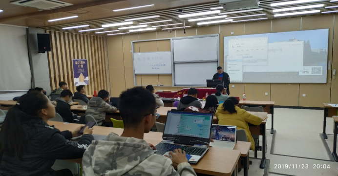 接着,进行了“你画我猜”游戏环节。之后由张鸿杰副书记进行PPT制作的讲解,涉及幻灯片的母版制作、动画的制作、字体及图片的正确格式。张鸿杰同学通过现场操作实践,给同学们详细的讲解了如何快速高效的做好一份PPT。