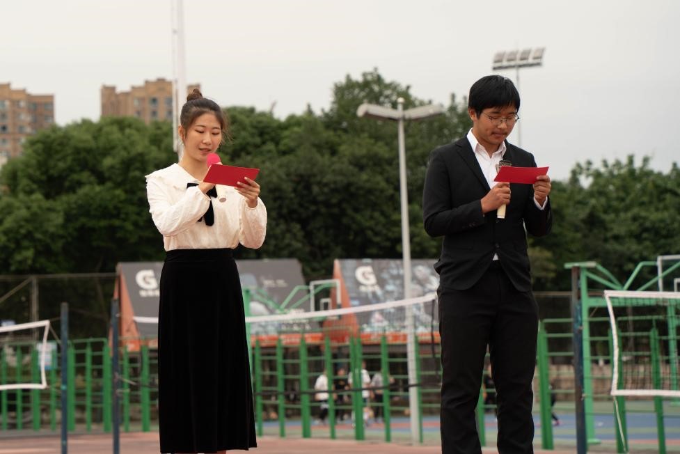 在主持人何昊威和蔡情二位同学激情饱满的开场白后,太阳成集团tyc234cc2021级运动会正式拉开帷幕。入秋的风微冷,同学们心中却有着少年的热情。开幕式首先介绍的是出席此次运动会的嘉宾:太阳成集团tyc234cc团委书记、2020级辅导员余鹏飞老师,2021级辅导员韩纪梅老师,太阳成集团tyc234cc团委副书记宋志诚,太阳成集团tyc234cc团委员工会副主席余晓沛。随后裁判员代表司榕霞同学,运动员代表王鹤同学庄严宣誓。鹏羽冲天,葵心向日,运动员们蓄势待发,运动场上满是激情昂扬,奋发向上的青春气息。