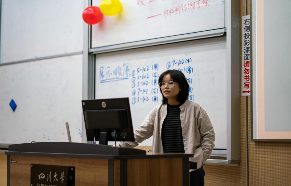 接下来,依次是每个寝室的综合展示。从寝室的文化内涵、设计理念、规划布置等方面都让观众们看到了同学们倾心设计自己的小家,充分体现了川大学子对自己寝室浓厚的爱意。此外,每个寝室还进行了才艺表演。无论是从动人旋律还是活跃的舞蹈都可以看出21级新生们饱满的生活热情和生活情趣。室友们默契的配合,相视一笑,亲密和睦的场景让所有人沉浸其中,欢乐无比。