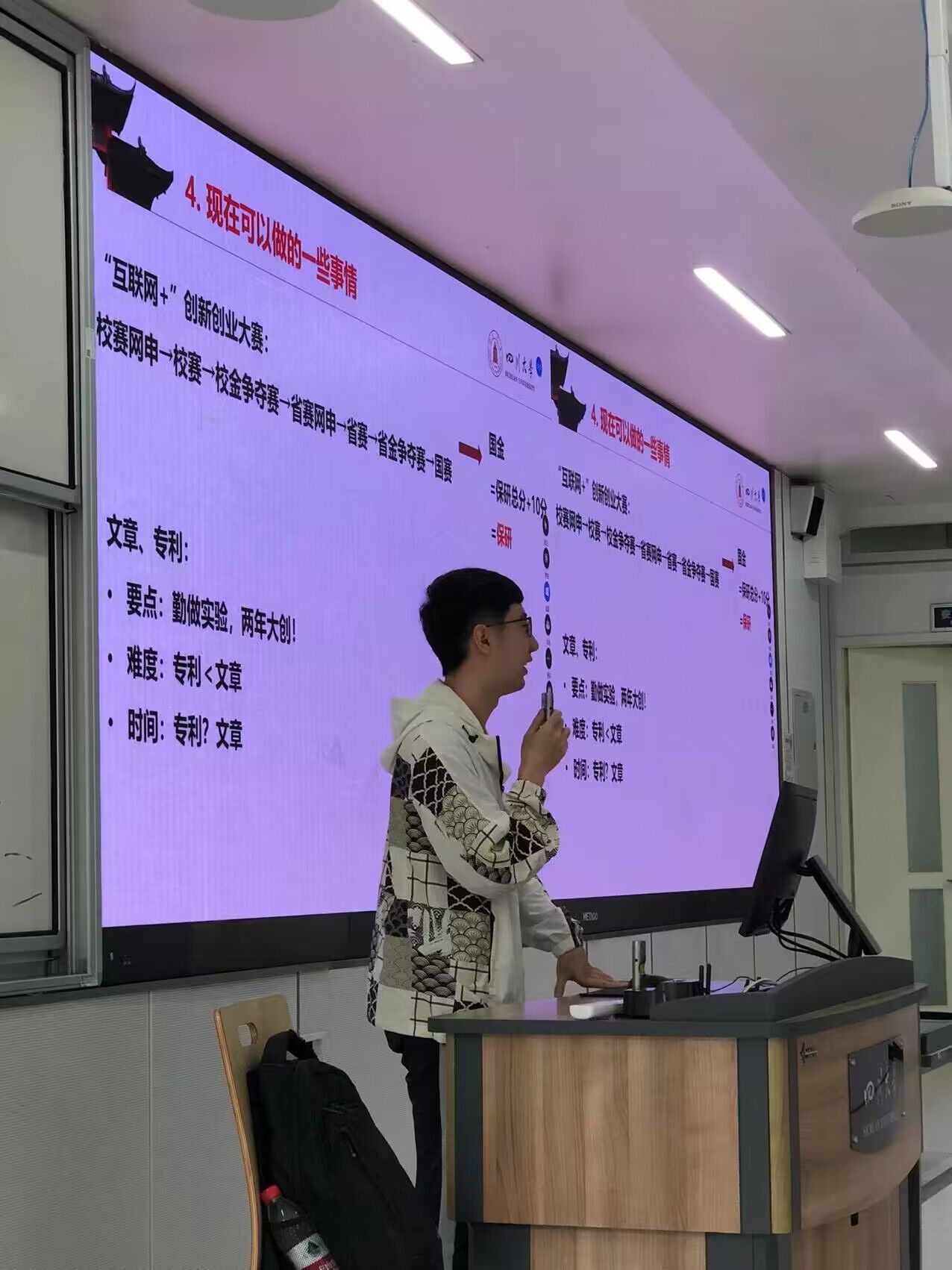 四位2019级的学长从如何安排复习进度、考研课程和资料的选择、各学科的复习方法、备考场所的选择、择校、心态的调试等六个方面分享了自己的备考经验。杨开杰学长还特别提醒了复试时的注意事项,粟亨培学长还对师弟师妹们对大学期间的学习生活给出了有益的意见和建议,并对新能源材料与器件专业的各导师的研究方向给予了简单的介绍。