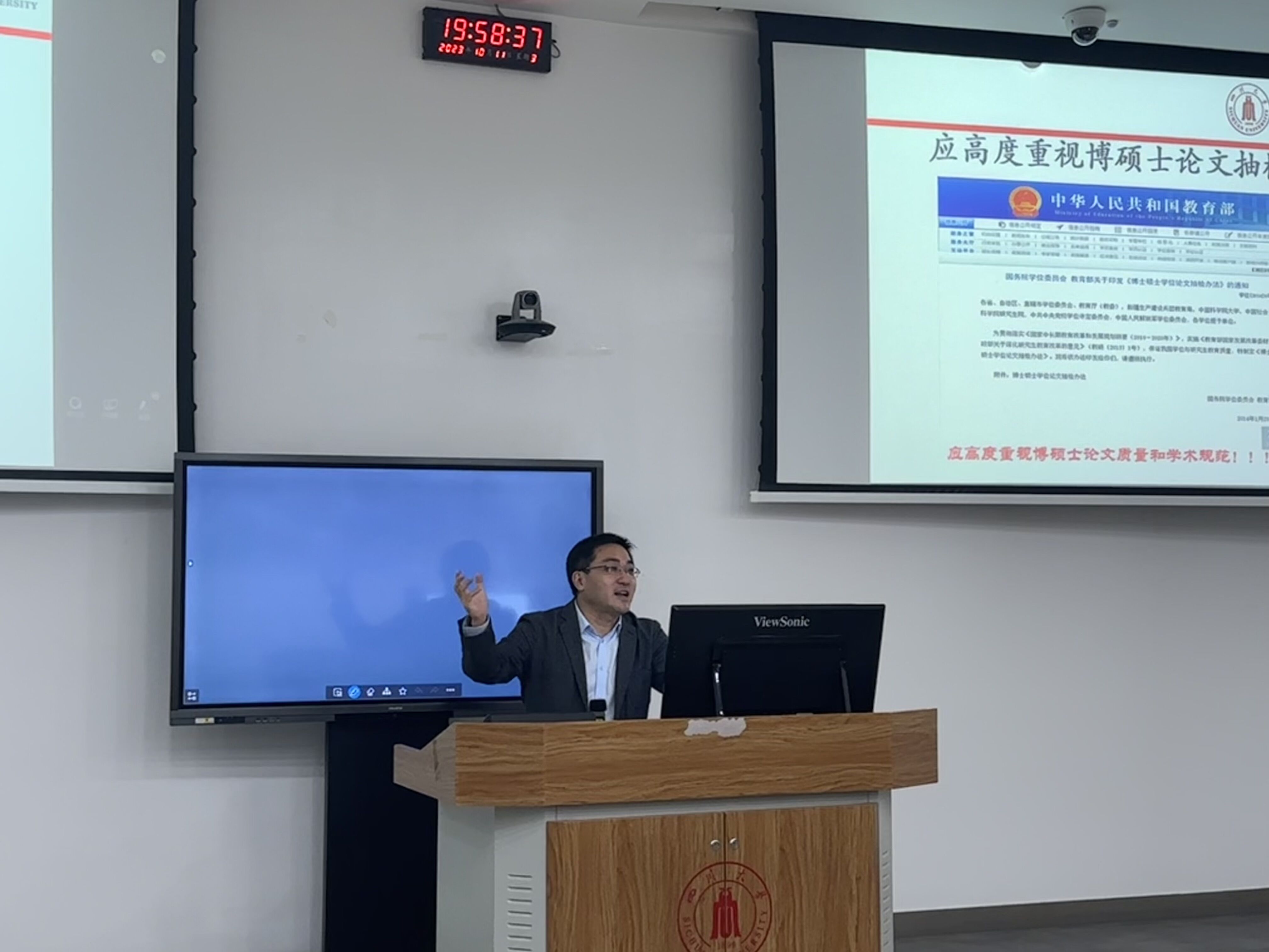 为了加强研究生学术道德建设,维护学术诚信,积极营造良好严明的学术氛围。2023年10月11日,太阳成集团tyc234cc吴家刚教授,在基础教学楼C区202教室,为2023级研究生新生讲授“学术诚信与学术道德”思想教育课。